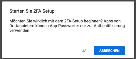 Sollte ein Pop-Up erscheinen bestätigen Sie die Installation von 2FA indem auf “Ja” geklickt wird