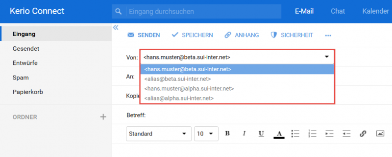 Aliase können beim Versenden als Absender ausgewählt werden.