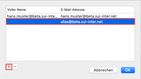 | Im Mac Mail muss der Alias manuell hinzugefügt werden, um diesen als Absender nutzen zu können. |