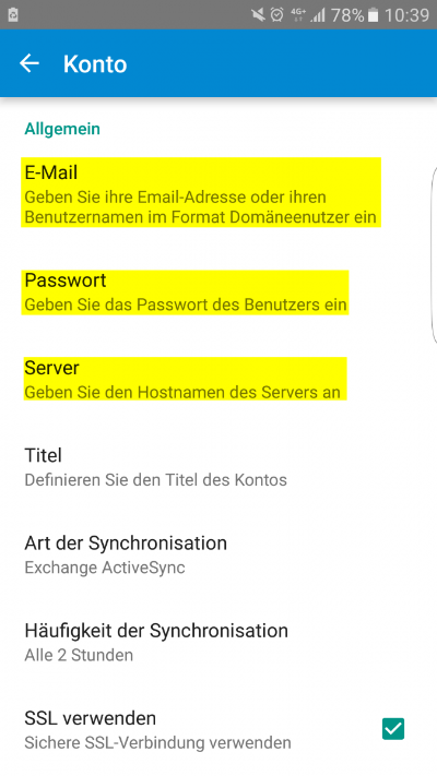 Die Anleitung beschreibt die Einrichtung von Business-Mail auf Android-Geräten ab Version 5.1.x und weist auf die Fragmentierung des Android-Betriebssystems hin, die keine allgemeingültige Anleitung ermöglicht. Nutzer sollten ihre spezifische Server-Adresse aus der Einrichtungsbestätigung verwenden. Für die Synchronisation von E-Mails, Kontakten und Kalendern wird standardmässig gesorgt, während Aufgaben und Notizen über die App "Tasks & Notes for MS Exchange" aus dem Google Play Store synchronisiert werden können. Anpassungen an den Servernamen sind abhängig von der Zuweisung notwendig.