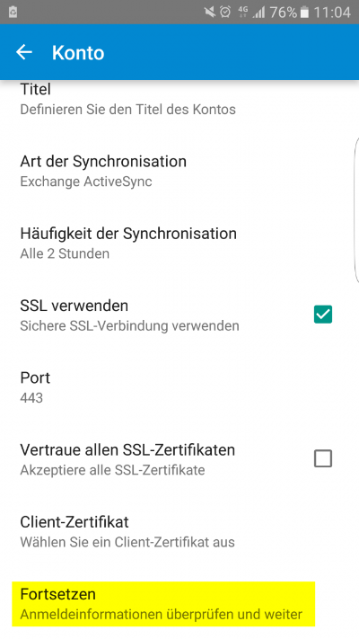 8. Standardmäßig werden nun die E-Mails, Kontakte und Kalender synchronisiert.