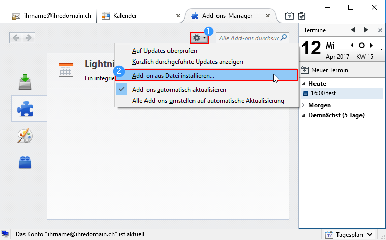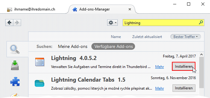Thunderbird bringt von Haus aus keine Kalender-Unterstützung mit. Daher muss diese Funktionalität mit einer Erweiterungen ergänzt werden. METANET empfiehlt hierzu die Erweiterung Lightning.