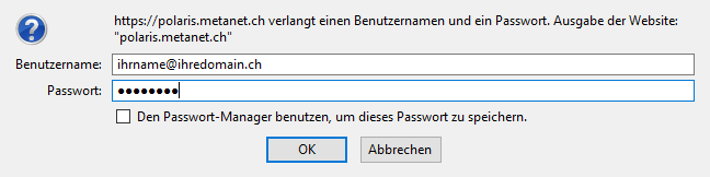 | Typ | Server Adresse | Port | SSL | Authentifizierung | Benutzername |