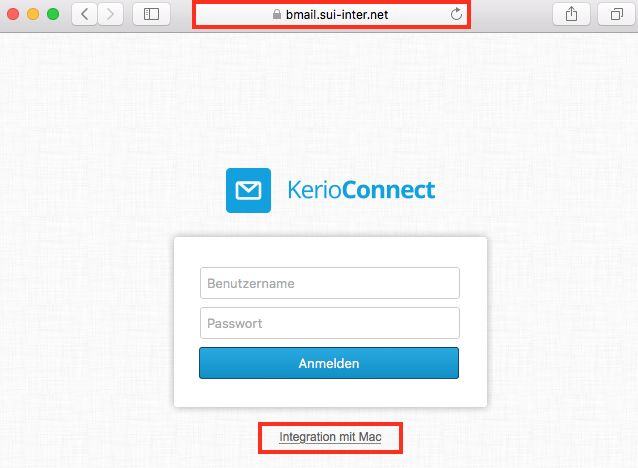 1. Navigieren Sie im Browser auf Ihren Businessmail-Server und klicken anschliessend auf "Integration mit Mac/Windows"