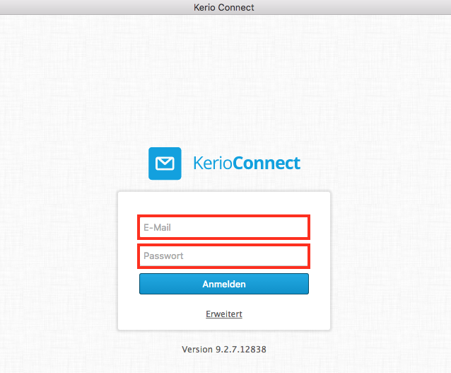 4. Starten Sie nun die Applikation "Kerio Connect" und tragen Ihre E-Mail Adresse sowie das dazugehörige Passwort ein.