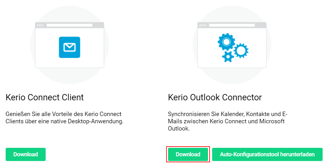 Klicken Sie auf der Download-Seite unter Kerio Outlook Connector auf „Download“: