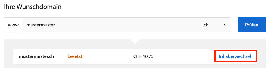 Für die Übernahme einer Domain benötigen wir einerseits das Einverständnis des aktuellen Domain-Halters sowie des neuen Domain-Halters.