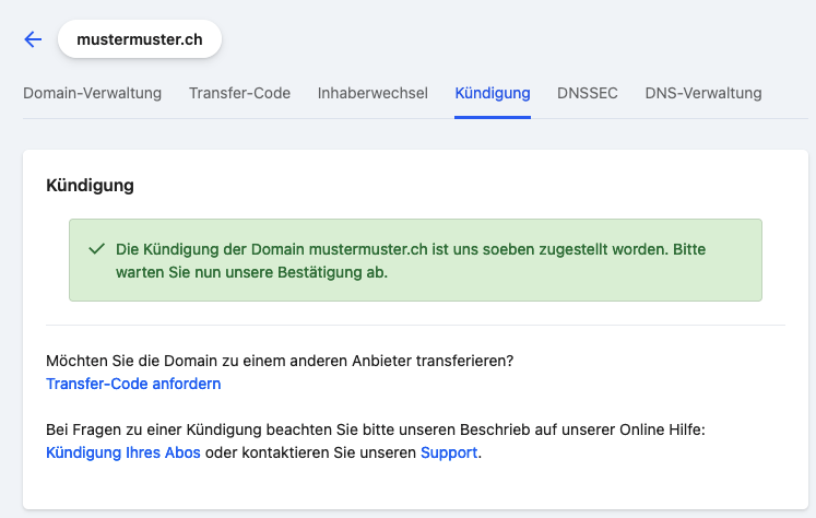 Die Domain ist somit gekündigt.