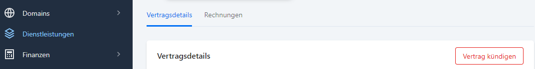 Klicken Sie hierzu in der Navigation links Dienstleistungen direkt auf die betreffende Dienstleistung. Klicken Sie nun in den Vertragsdetails auf den Menüpunkt Vertrag kündigen.