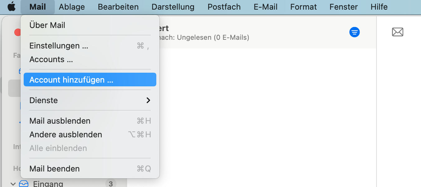Wenn noch kein Konto in Mac Mail vorhanden ist, steigen Sie direkt beim 2. Schritt ein.