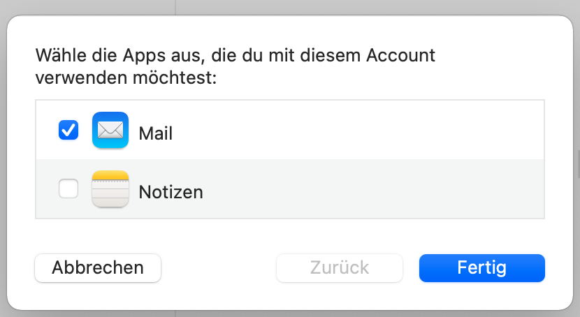 Stellen Sie sicher, dass der Haken bei Mail gesetzt ist und schliessen Sie die Installation mit Fertig ab.