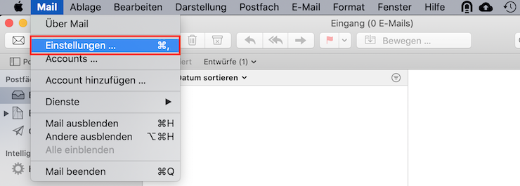 5. Öffnen Sie in der Menüliste unter Mail die Einstellungen...