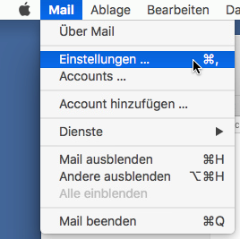 5. Öffnen Sie in der Menüliste unter Mail die Einstellungen...