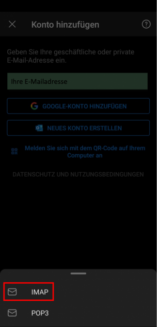 4. Hier können verschiedene Ansichten erscheinen. Wählen Sie "IMAP" aus.