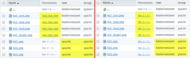 Durch die Rechtevergabe werden die Rechte so gesetzt, dass Ihre Daten global nicht mehr beschreibbar sind, wodurch eine erhöhte Sicherheit besteht. Mit der Umstellung auf FastCGI wird nur noch mit einem Benutzer, dem FTP-Benutzer, gearbeitet und somit werden Berechtigungsprobleme vermieden.