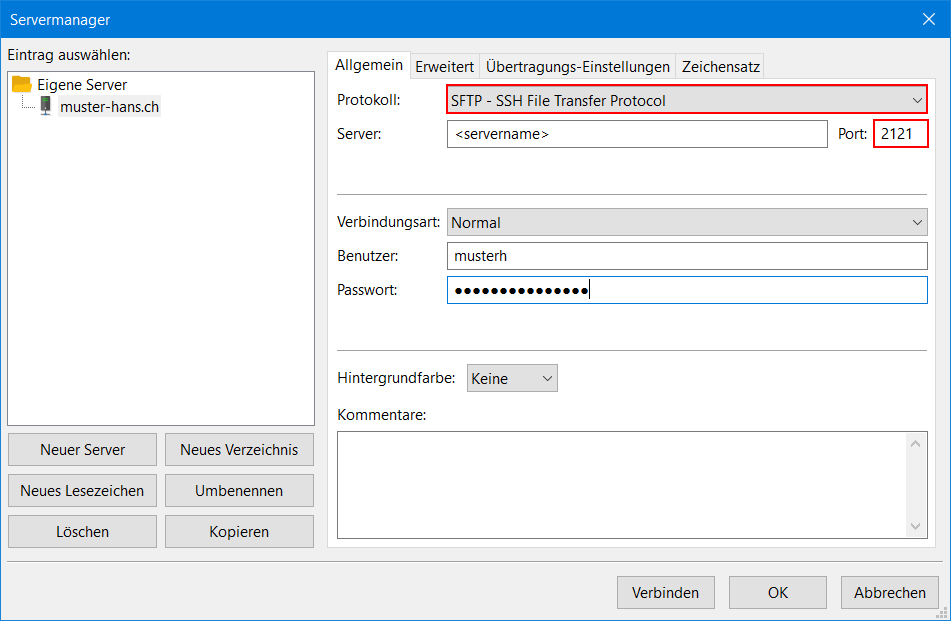 Nicht jedes FTP Programm unterstüzt das SFTP Protokoll. Prüfen Sie daher vorgängig ob SFTP von Ihrem FTP Programm unterstüzt wird. Nachfolgend finden Sie die Anleitung zur Einrichtung unter dem FTP Programm FileZilla.