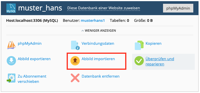 Datenbank, indem Sie auf „Abbild importieren“ klicken: