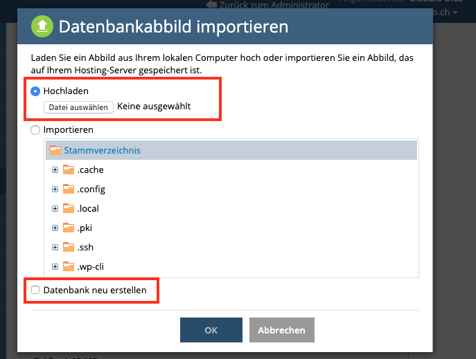Exportieren Sie vorgängig die .sql Datei vom aktuellen Hoster und
