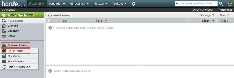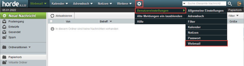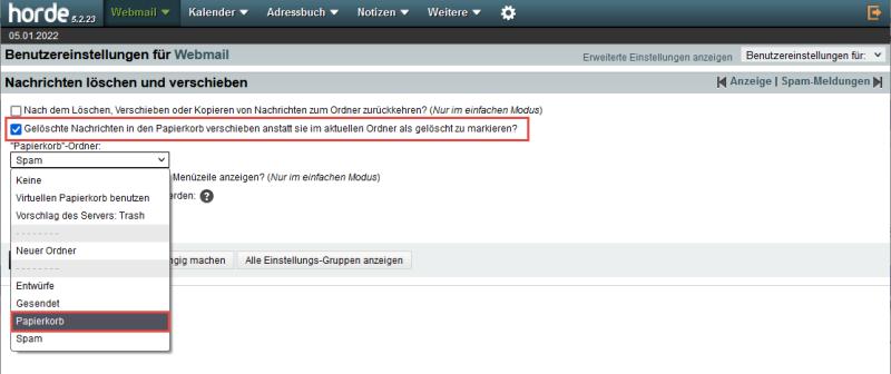 E-Mails im Horde Webmail werden bei einer Löschung durchgestrichen, anstatt in den Papierkorb verschoben.