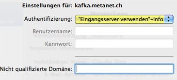 - Klicken Sie auf Weitere Optionen und wählen Sie als Authentifizierung Eingangsserver verwenden.