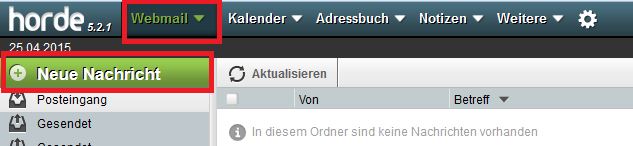 Um zur Webmail-Übersicht zu gelangen und die E-Mails zu verwalten / anzusehen, klicken Sie nach dem Login oben links auf "Webmail". Anschliessend sehen die Übersicht mit allen Ordnern wie Posteingang, Postaugang, Gesendete, etc.