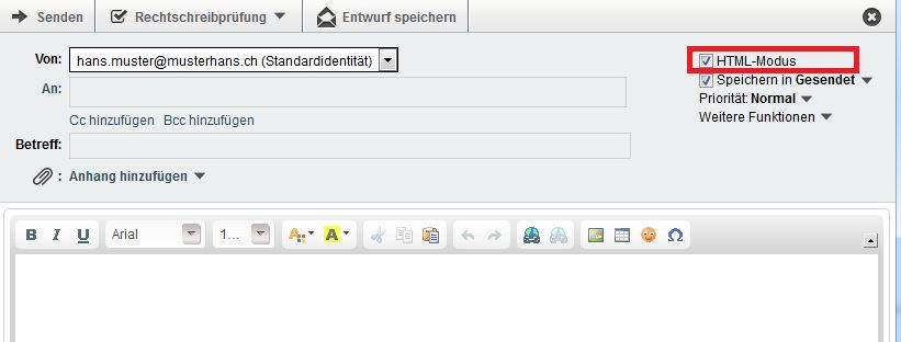 Sie können Nachrichten entweder im normalen Textmodus oder auch als HTML erstellen und verschicken.
