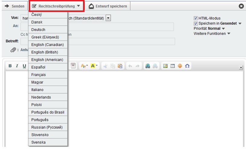 Sie können den Text in der aktuell zu verfassende Nachricht auf Rechtschreibfehler überprüfen lassen.