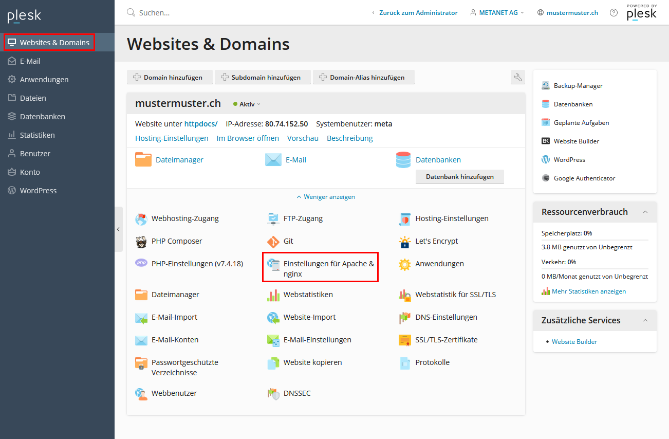 Klicken Sie anschließend auf 'Einstellungen für Apache & nginx'