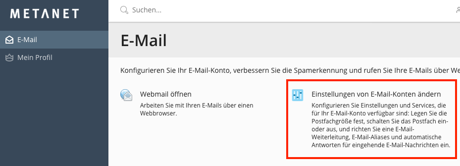 Wählen Sie die Option „Einstellungen von E-Mail-Konten ändern“.