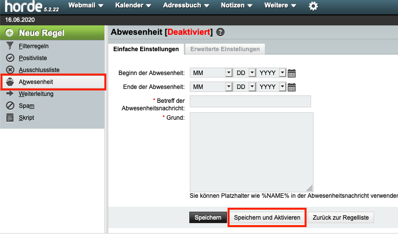 Eine Abwesenheitsmeldung kann auf verschiedene Arten definiert werden. Nachfolgend beschreiben wir die jeweiligen Wege: