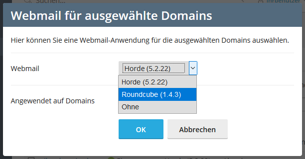 Wählen Sie nun an der Position Webmail das gewünschte Interface aus und bestätigen Sie mit OK.