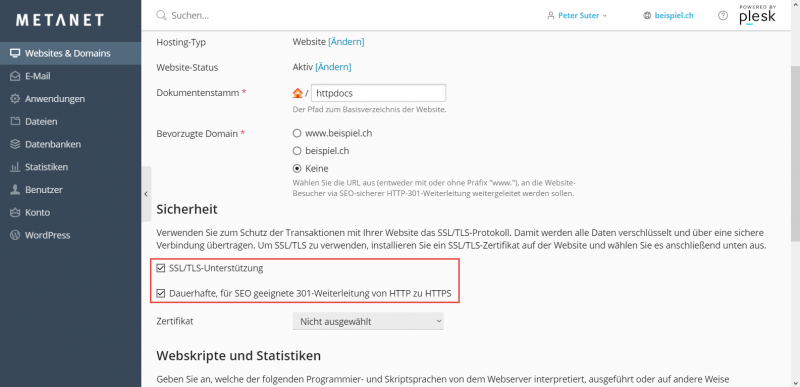 Falls die Webseite nur auf https erreichbar sein soll, können Sie auch die "Dauerhafte, für SEO geeignete 301-Weiterleitung von HTTP zu HTTPS" aktivieren.