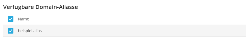 Falls Domain-Aliasse existieren, können diese im Abschnitt Verfügbare Domain-Aliasse ebenfalls durch das Zertifikat geschützt werden: