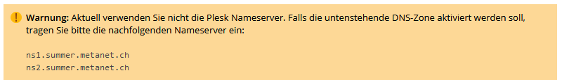 Um zusätzliche Domains in Plesk korrekt zu betreiben, müssen diese auf den richtigen Server zeigen, was durch die Nameserver geregelt wird. Jeder Webhosting-Server hat zwei spezifische Nameserver, die individuell angepasst werden müssen. Bei METAhost Webhosting sind dies beispielsweise ns1.servername.metanet.ch und ns2.servername.metanet.ch. Die konkreten Angaben finden sich in der Webhosting-Einrichtungsbestätigung oder direkt in Plesk. Für die Eintragung der Nameserver bei einer Domain, die über METANET registriert ist, gibt es eine Anleitung. Bei Domains anderer Anbieter sollte die Registrierstelle kontaktiert werden.