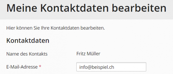 Reseller Fritz Müller hinterlegt die E-Mail-Adresse info@beispiel.ch für seinen Plesk Admin Benutzer.