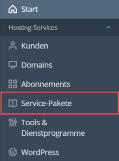 Wählen Sie den Menüpunkt “Service-Pakete” aus: