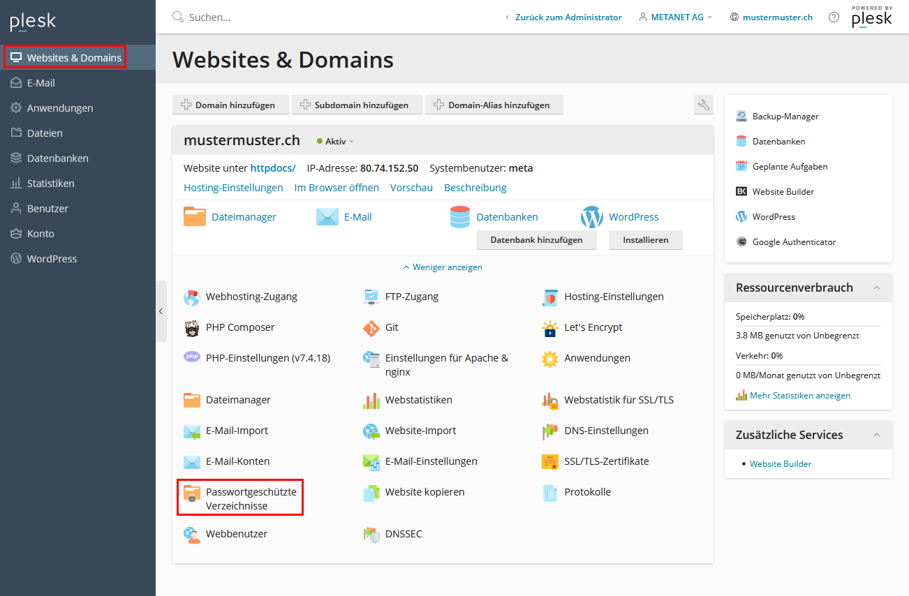 Klicken Sie auf Passwortgeschützte Verzeichnisse: