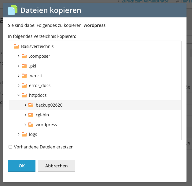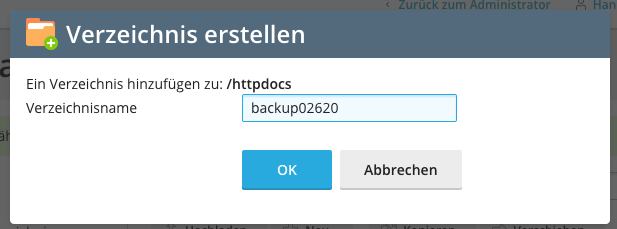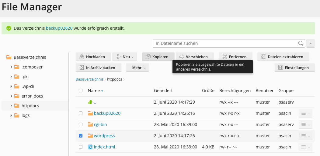 METANET nimmt Datensicherungen für bis zu 7 Tage rückwirkend vor. Es kann jedoch manchmal angebracht sein, vor größeren Änderungen an einem Webauftritt vorher eine Sicherungskopie anzulegen. Dies kann entweder mit Plesk Backup erfolgen oder mit der Funktion der Verzeichniskopie, damit man nicht auch gleich E-Mails mitgesichert werden, sondern nur gezielt die Webdaten.