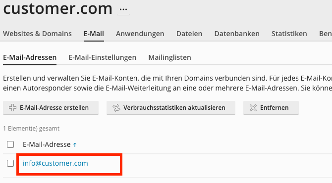 Wechseln Sie zum Reiter E-Mail und klicken Sie direkt auf die betreffende E-Mail Adresse: