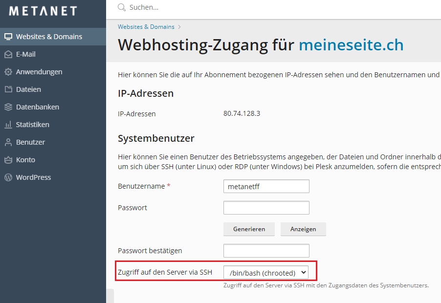 Der Artikel bietet eine detaillierte Anleitung zur Aktivierung und Nutzung des SSH-Zugangs über das Plesk Administrationstool. Er beschreibt, wie man sich einloggt, den SSH-Port 2121 verwendet und Befehle ausführt. Zudem listet er verfügbare Befehle und Tools wie Composer, PHP-Versionen und SSH-Keys auf. Der Artikel erklärt auch, wie man MySQL-Verbindungen korrekt einrichtet und gibt Hinweise zur Nutzung von WordPress CLI und Drupal. Auf Managed Servern ist SSH standardmässig deaktiviert und muss über den Support aktiviert werden.