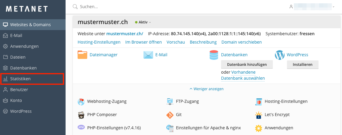 Klicken Sie in Menü auf den Punkt Statistiken.