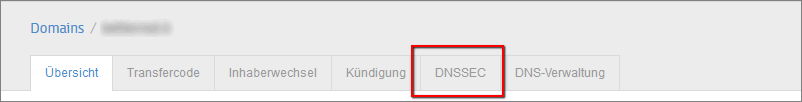 Wechseln Sie hierzu in der Domainverwaltung auf Domain-Ebene zum Reiter "DNSSEC":