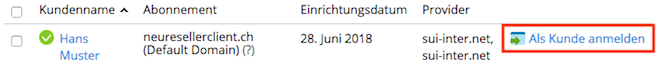 Die Aktivierung selbst erfolgt dann auf Kunden-Ebene. Zum Testen können Sie einen Sitzungswechsel auf die Kundenansicht vornehmen: