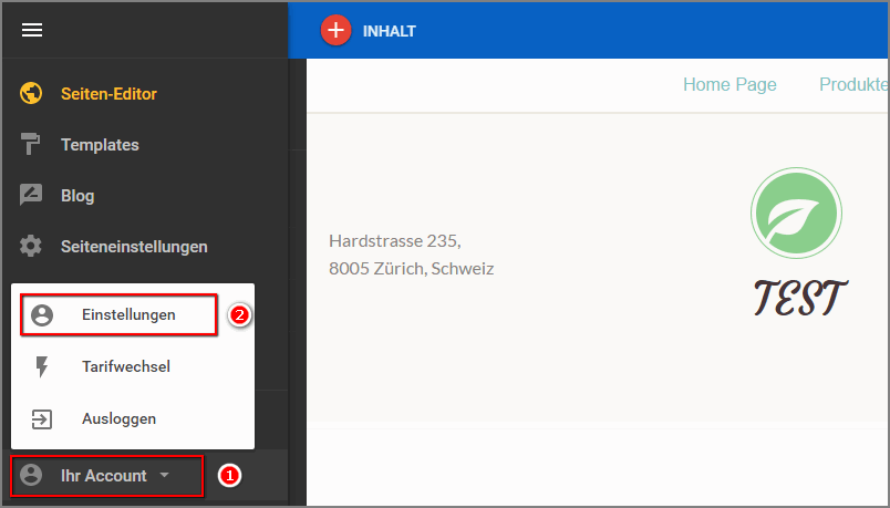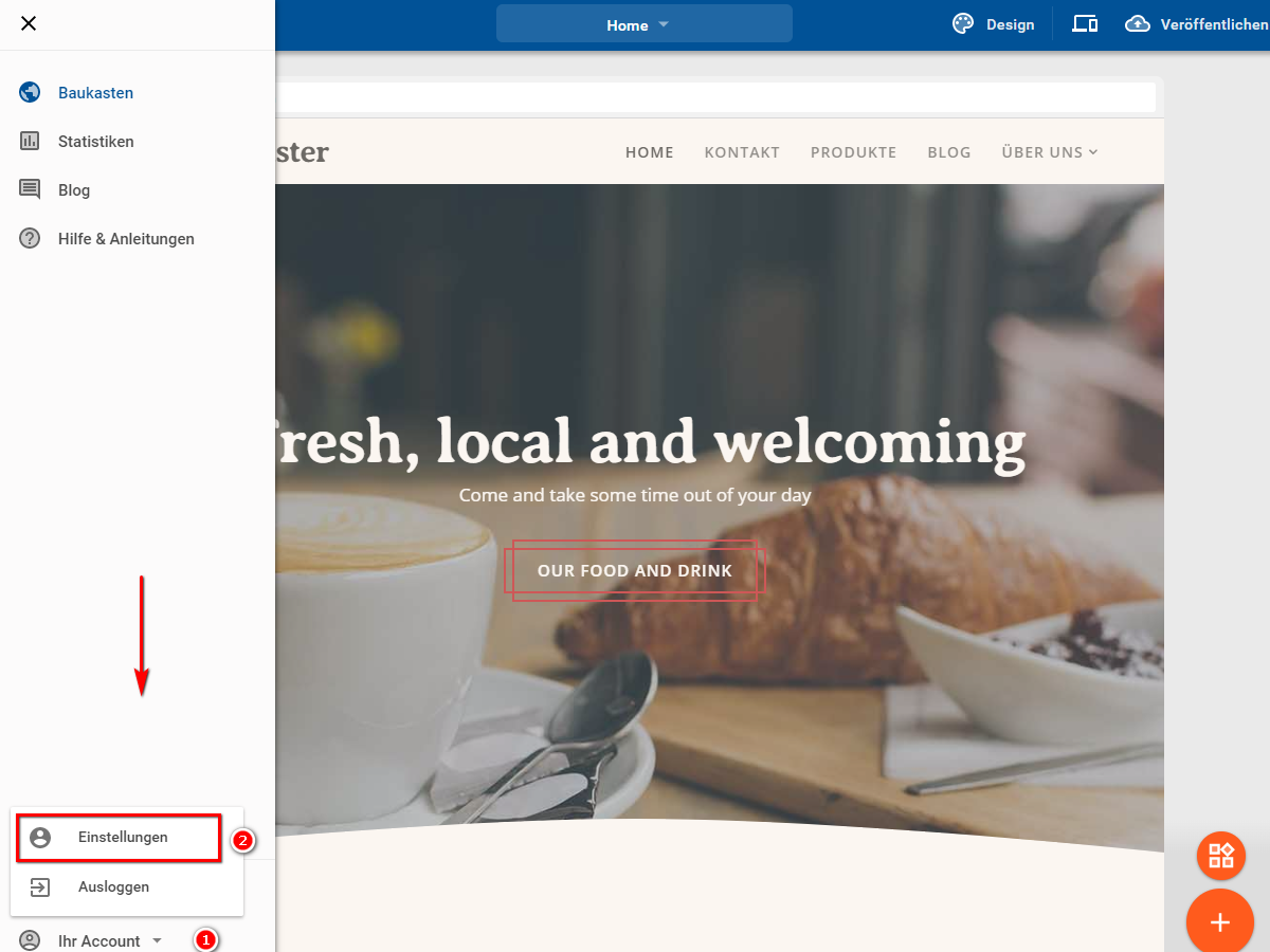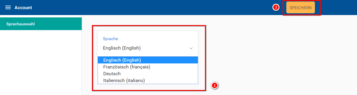 Wählen Sie nun "Ihr Account" und danach "Einstellungen", um das Sprachwahlmenü zu erreichen: