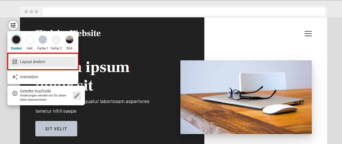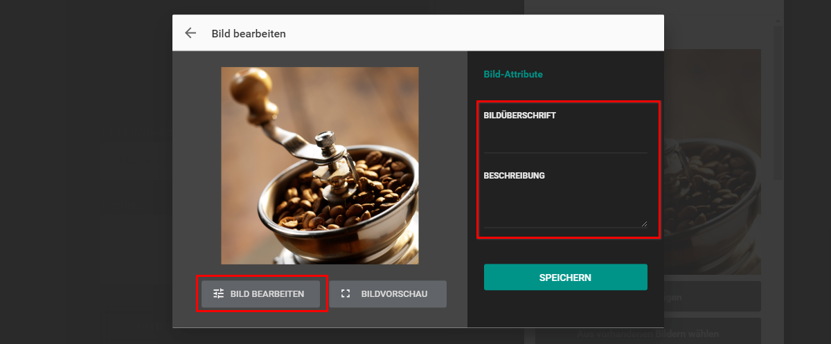 Via "Bild bearbeiten" können Sie direkt im Website Builder-Editor Anpassungen am Bild vornehmen: