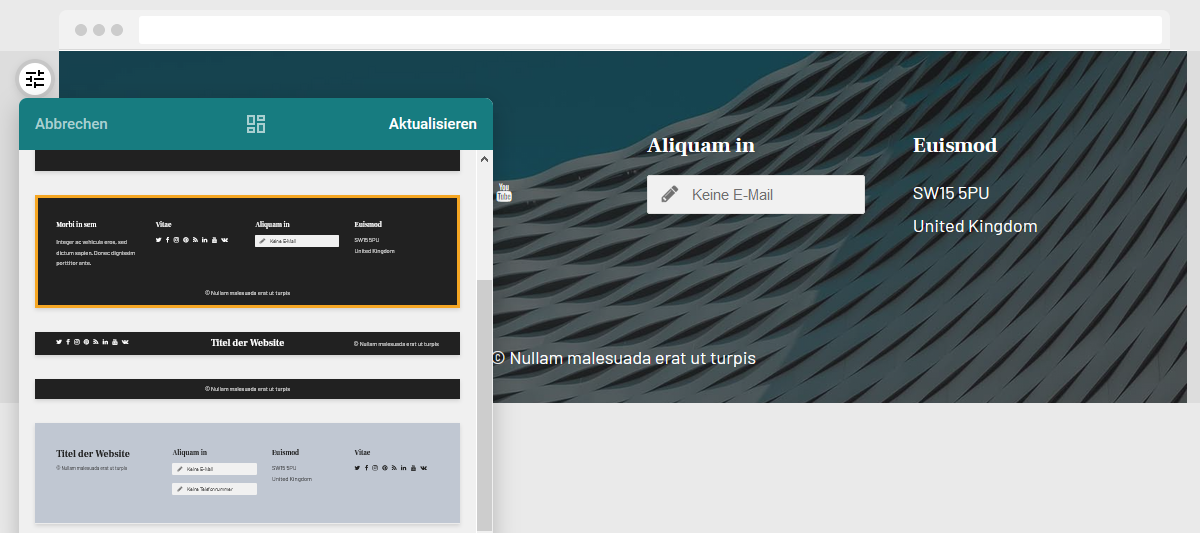 Analog dazu kann auch die Fusszeile (unterster Bereich) das Layout beeinflussen:
