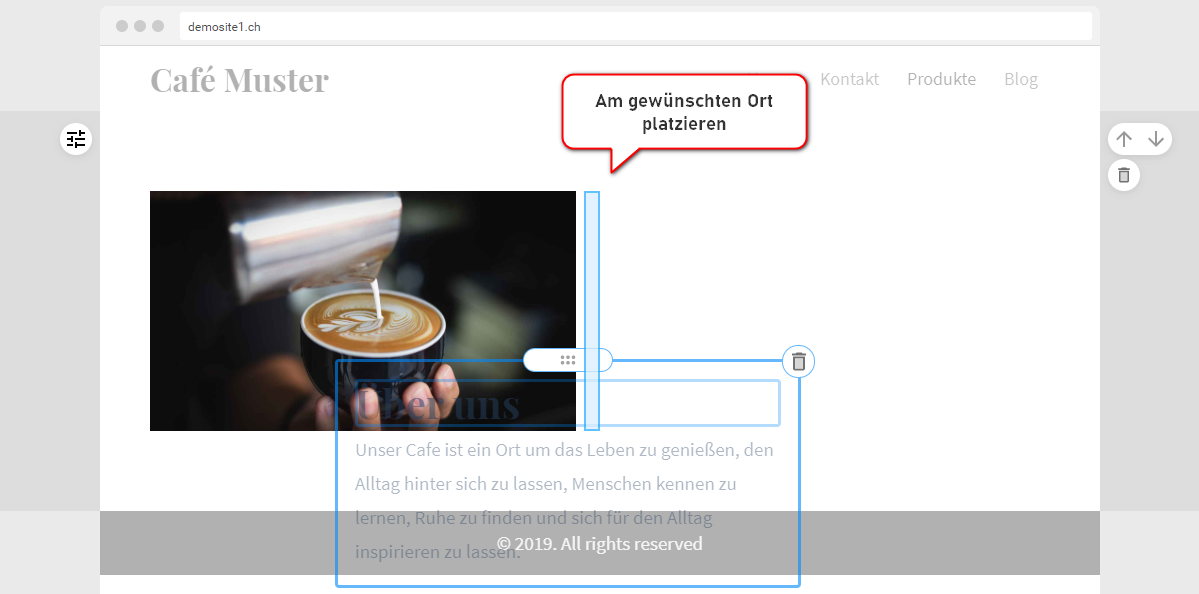 Bereits platzierte Elemente können jederzeit verschoben werden: