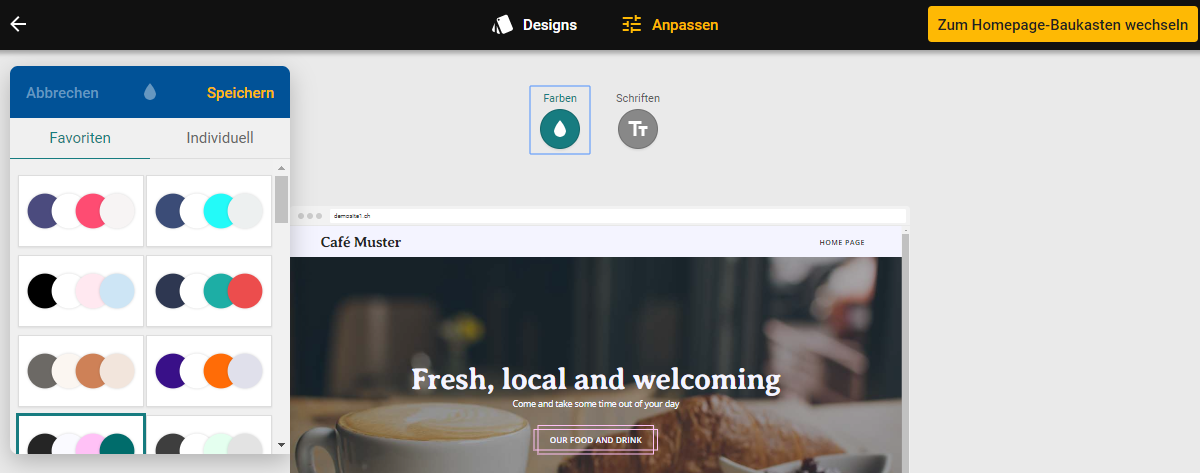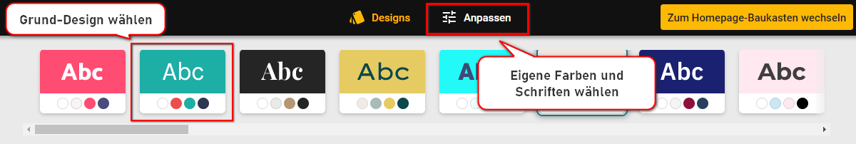 | Das Grund-Layout der Webseite wird durch die Wahl des Designs, der Basisfarben und den Schriften definiert. |
