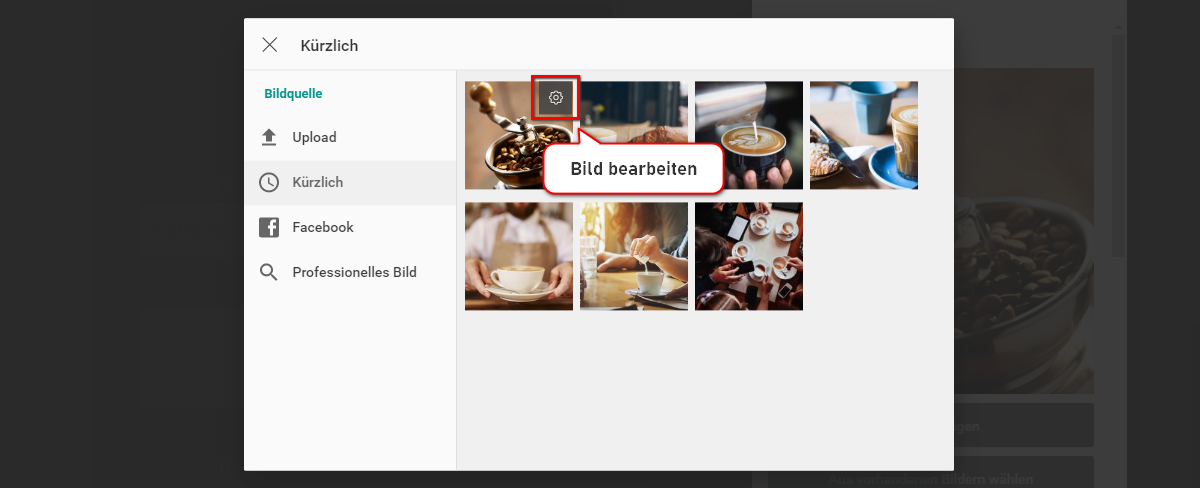Unter "Kürzlich" können die hochgeladenen Bilder bei Bedarf bearbeitet werden (die Vorlage-Bilder sind davon ausgenommen).