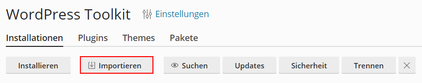 Je nach Datengröße und Umfang der WordPress-Seite kann das WordPress Toolkit eingesetzt werden, um eine extern gehostete Installation zu importieren. Ab einer bestimmten Größe der WordPress-Instanz und je nach Komplexität der benutzten Plugins ist jedoch eine manuelle Migration empfohlen.